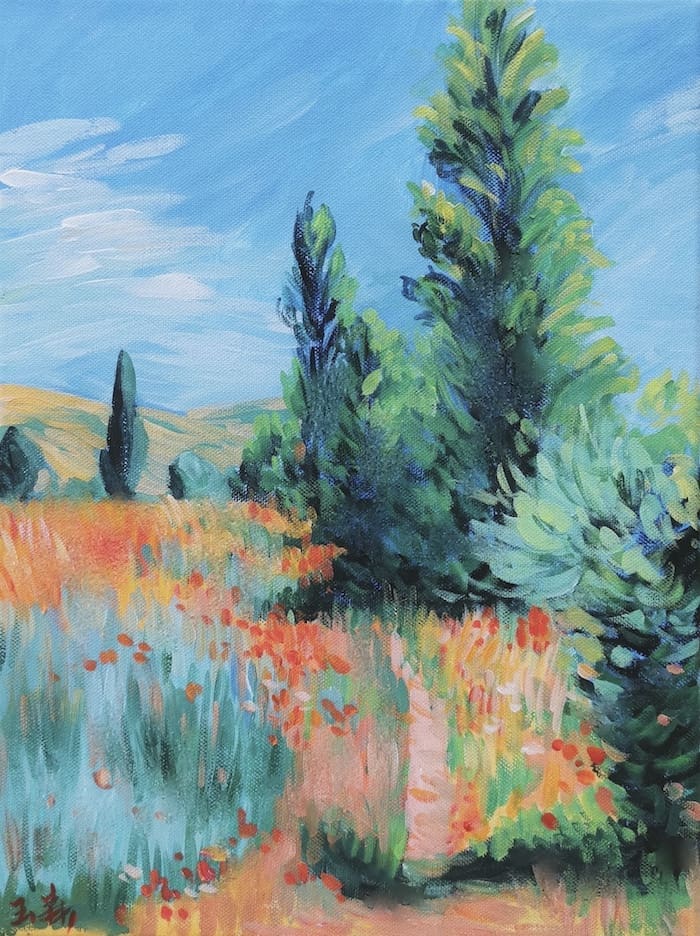 Paint Like Van Gogh: Wheat Field with Cypresses