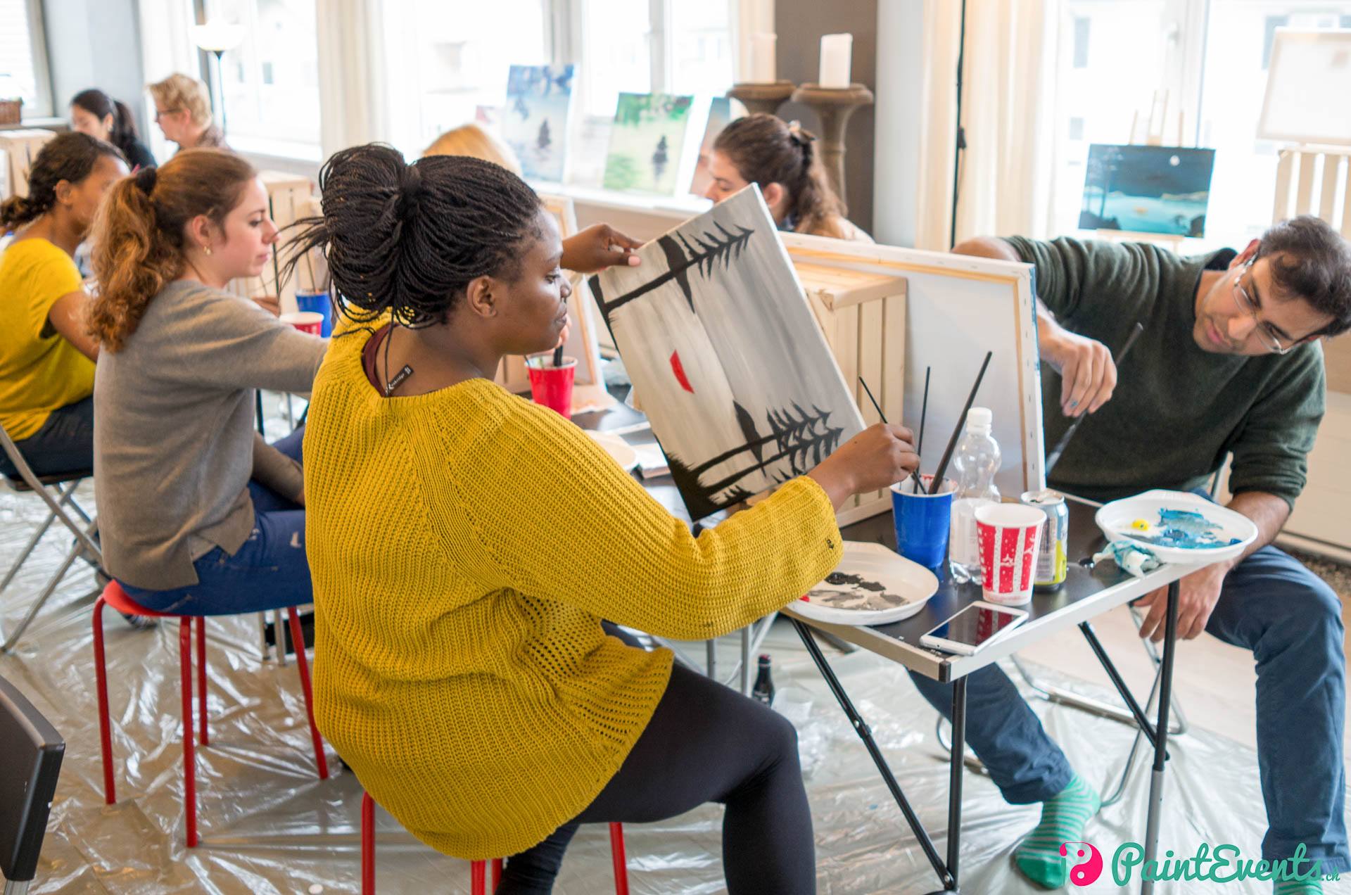 PaintEvents ist ein Zürcher Start-Up, das seit 2016 kreative Workshops in Restaurants, Bars, Yogastudios und im eigenen Atelier in Zürich Enge anbietet. Ganz nach dem Motto “Gönn dir eine kreative Auszeit” richten sich die Events an alle, die gerne für ein paar Stunden Smartphone und Stress gegen Pinsel, Farben und Gelassenheit austauschen möchten.