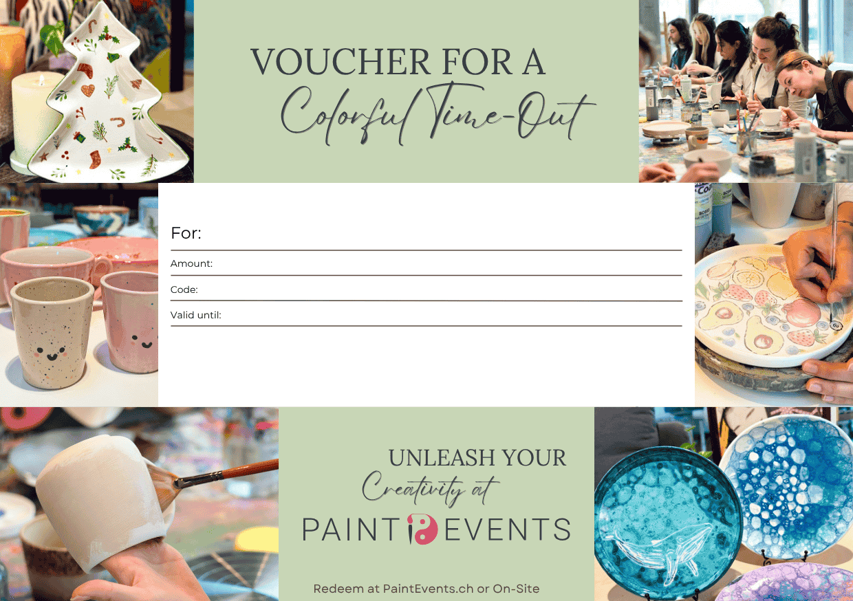- Betrag nicht auf dem Gutschein anzeigen? Melde dich nach dem Kauf kurz bei uns (info@paintevents.ch). Wir können Dir ein angepasstes PDF ohne Betrag senden.
