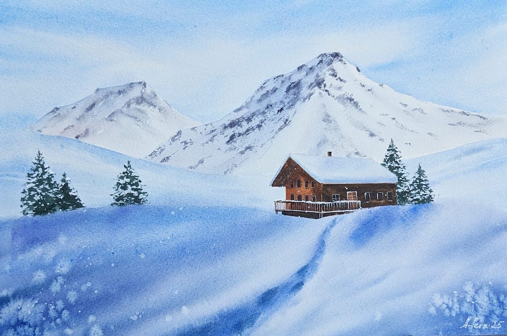 Guided Painting: Chalet in the Winter Glow (watercolor)