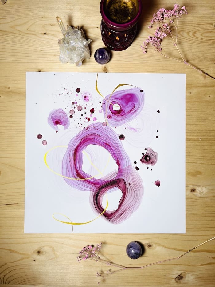 This workshop is designed for you to embrace the movement and lightness of fluid watercolor paint. Playing with the fluidity of acrylic ink brings joy to the painting process, offering a fun way to experiment with colors and fluid paint.