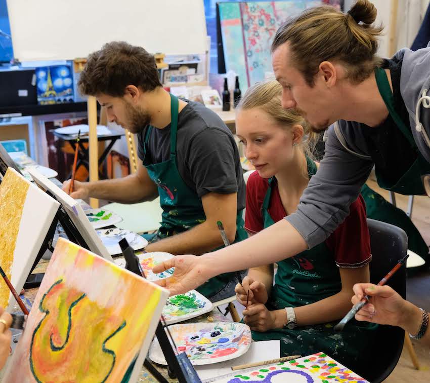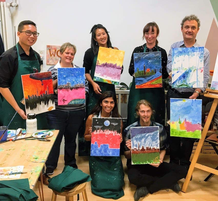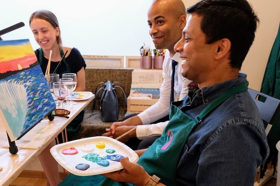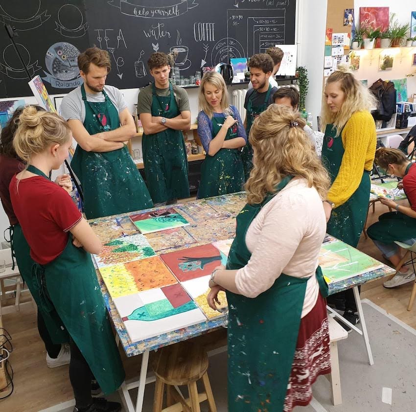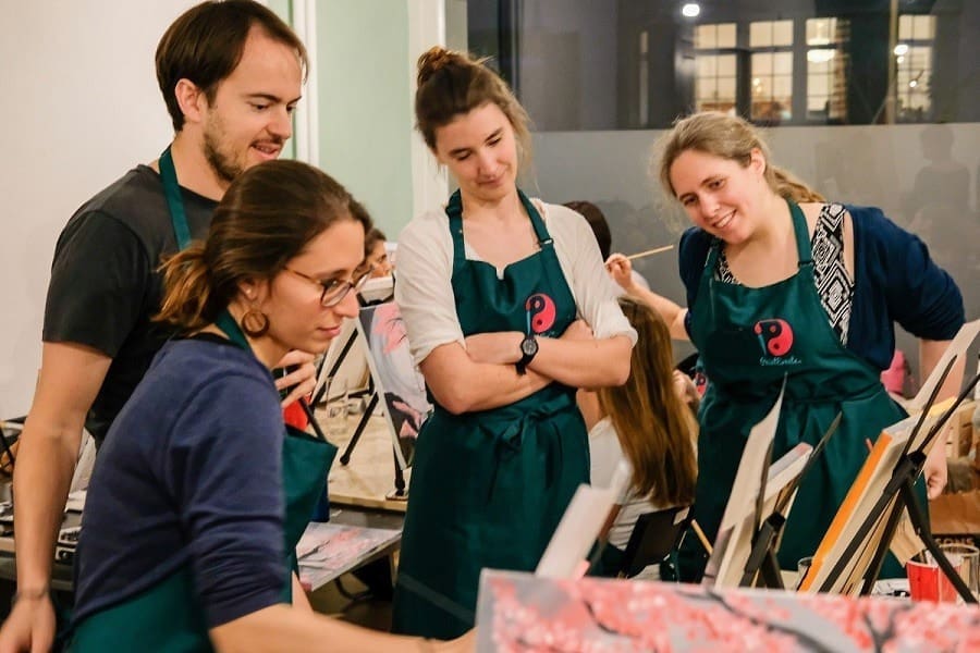 Ob Teambuilding Event, Weihnachtsfeier, Firmenjubiläum oder Kreativworkshop – unsere Team-Events bieten den perfekten Rahmen, um eure Gruppe zusammenzuschweissen. Bei einem Paint Event kommt ihr untereinander ins Gespräch, betätigt euch kreativ und erschafft zugleich etwas, worauf ihr als Gruppe stolz sein könnt. Die fertigen Bilder eignen sich perfekt zur Dekoration eures Büros oder können aber natürlich auch von jedem Teilnehmer mit nach Hause genommen werden.
